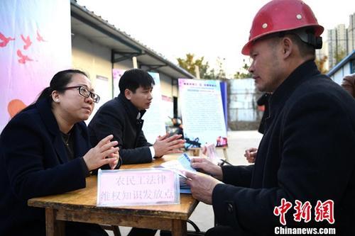資料圖:法律工作者為外來務(wù)工人員提供法律咨詢。中新社記者 韓蘇原 攝