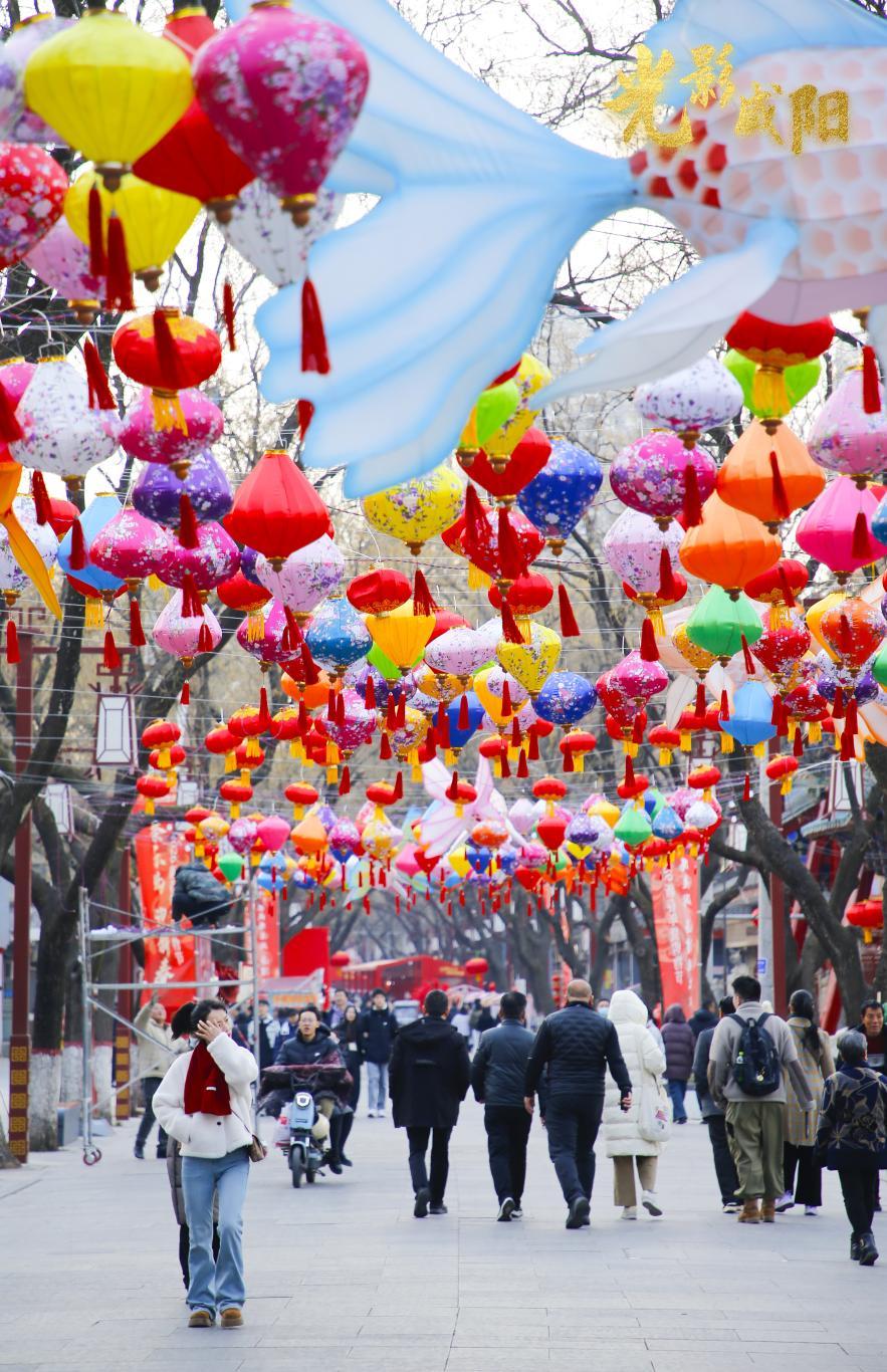 五彩繽紛的燈籠點綴咸陽老街。
