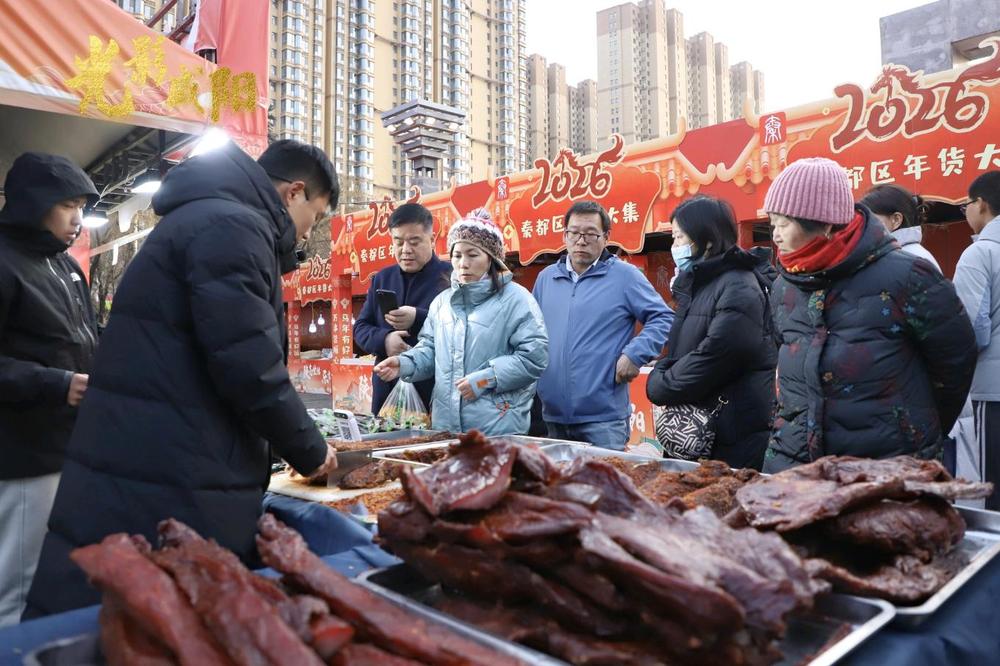 年貨采購進入高峰,城區(qū)消費市場暖意升騰。咸陽老街、中華廣場和中心廣場等年貨會場人氣高漲,特產(chǎn)干貨、春聯(lián)福字、非遺文創(chuàng)、特色美食琳瑯滿目,商戶備貨充足、價格平穩(wěn),市民忙著挑選年貨,濃郁的年味在這里匯聚,煙火氣十足。