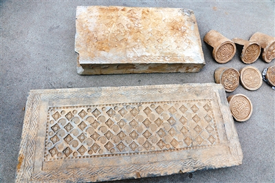 昨日下午,記者在公安閻良分局看到,被趙某等人盜挖的文物有云紋瓦當,有尺寸較大的漢磚,瓦當上有精美的圖案和文字,漢磚制作講究,配有漂亮的紋飾。在作案工具中,除了鐵锨之外,還有兩根很專業(yè)的探針。