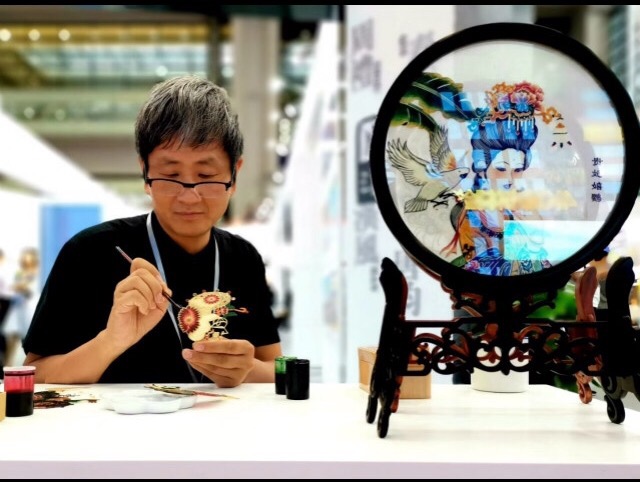 廣州參觀者王晶:"剛剛走進(jìn)來就被吸引過來了,一個可觸摸的透明的展示屏,可以讓文物'活'起來,我感覺很好,高科技跟傳統(tǒng)藝術(shù)的一個結(jié)合。"