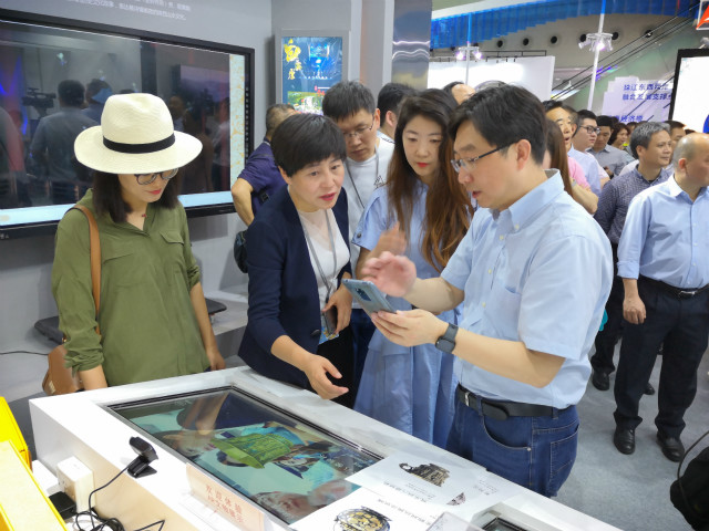 李斌:"我們這邊參展的是互聯(lián)網(wǎng)+文物教育平臺,主要通過AR、VR等形式,讓文物'活'起來。因為本來這個東西都是冷冰冰的東西,大家沒有興趣,而通過這個東西,讓文物背后的故事說話。"