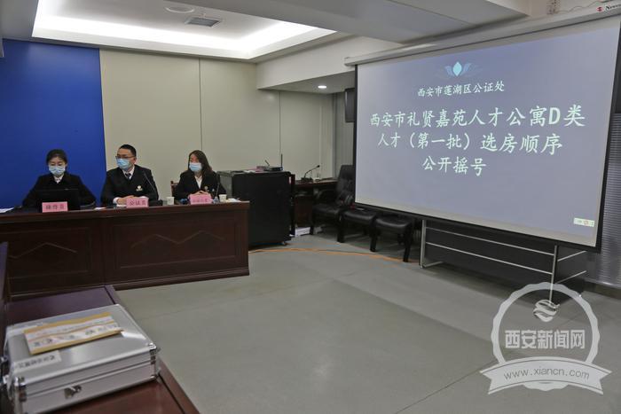 當(dāng)天的搖號活動采取電腦搖號方式進(jìn)行,搖號使用的電腦設(shè)備及搖號軟件均由西安市蓮湖區(qū)公證處提供;所有參加本次搖號的D類人才,通過電腦搖號系統(tǒng),一次性搖出所有D類人才選房順序號,并按照順序號依次進(jìn)行選房;整個(gè)分配過程由市住房保障工作人員、新聞媒體現(xiàn)場監(jiān)督,公證機(jī)關(guān)工作人員進(jìn)行現(xiàn)場監(jiān)督公證。