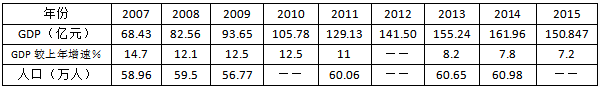◎西安市戶縣(鄠邑區(qū))2007年-2015年GDP值、GDP增速、人口數(shù)量整體呈增長趨勢,數(shù)據(jù)來源于戶縣人民政府網(wǎng),制表 舒隆煥