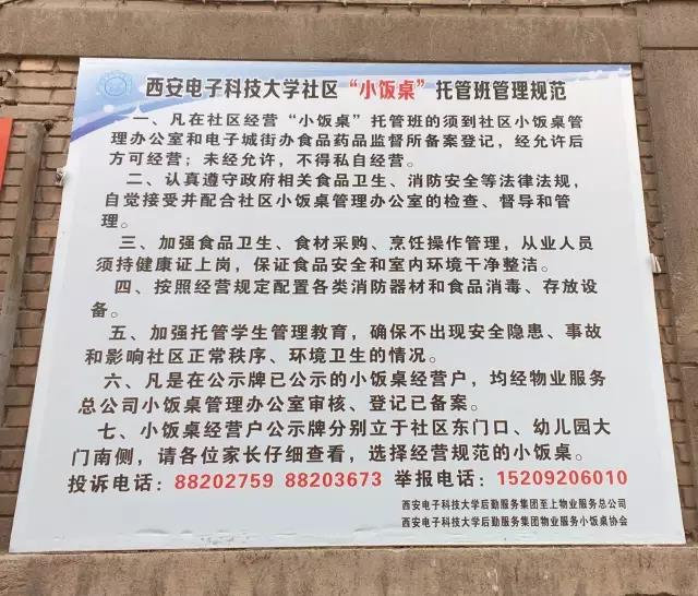 西安電子科技大學社區(qū)內托管班招牌上附有“小飯桌登記備案戶”牌匾圖片 圖片來自大秦之聲