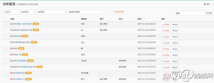 8月以來,西部網(wǎng)“民生熱線”欄目已經(jīng)收到5000多例關(guān)于酷騎單車押金難退的投訴。
