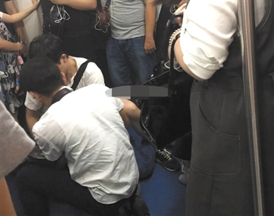 7月10日,地鐵色狼被抓時企圖逃跑,將民警咬傷,多名乘客上前幫助控制色狼。圖 平安北京官方微博