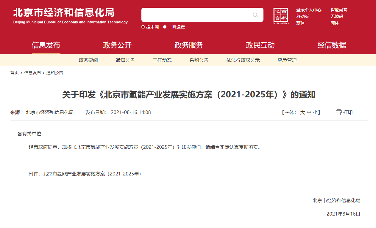 央廣網(wǎng)北京8月17日消息(記者 萬玉航)記者從北京市經(jīng)濟(jì)和信息化局了解到,昨日,該局印發(fā)了《北京市氫能產(chǎn)業(yè)發(fā)展實(shí)施方案(2021-2025年)》的通知。