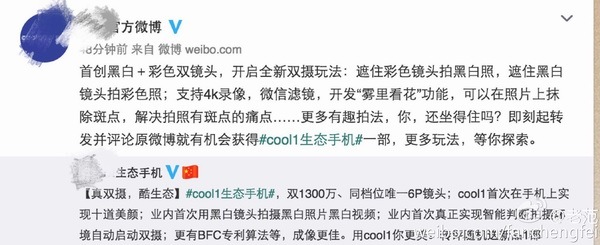 2.某國產(chǎn)品牌,如此介紹自己的雙攝:“遮住彩色鏡頭拍黑白照,遮住黑白鏡頭拍彩色照”——我滴個神啊,在手機(jī)菜單里做個切換功能有那么難嗎,想拍彩色照片還得手動遮住黑白鏡頭,真是智商感人。