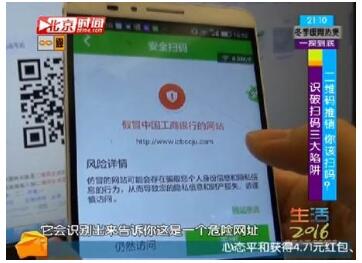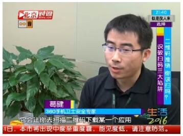 提到二維碼,相信絕大多數(shù)人都不會(huì)感到陌生。移動(dòng)支付、社交軟件溝通、打折優(yōu)惠、電子票券等各種各樣的二維碼,現(xiàn)已覆蓋了我們生活的方方面面。與此同時(shí),二維碼所帶來(lái)的風(fēng)險(xiǎn)也日益增多。近日,北京電視臺(tái)播出的《生活2016》欄目中,來(lái)自360公司的安全專家現(xiàn)場(chǎng)便揭秘了常見的二維碼陷阱和識(shí)別技巧。