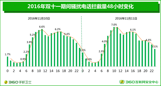 圖1:雙十一期間360手機衛(wèi)士平均每天攔截的騷擾電話多達1.6億次