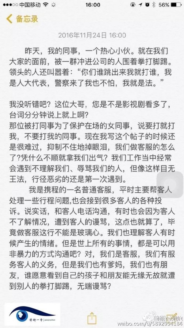 上周六,沈某帶著11個人來到攜程公司辱罵客服,稱攜程欺詐,索要退一賠一的補(bǔ)償,共計(jì)近11萬元。