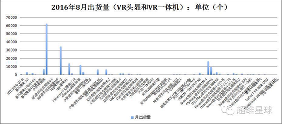 根據(jù)天貓平臺(tái)的VR銷(xiāo)量來(lái)看[vi],2015年1月1日到2016年9月7日,VR在天貓商城整體銷(xiāo)量為126.68w臺(tái),而這個(gè)數(shù)據(jù)并不包括cardboard的銷(xiāo)量。在這些售出的VR中以低端為主。