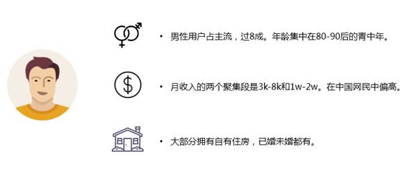 主力購(gòu)買(mǎi)人群為18-30歲的青中年男性,收入兩個(gè)聚集段是3k-8k和1w-2w。