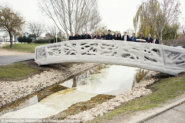 加泰羅尼亞高等建筑研究院負責整座橋的設計,設計團隊負責人 Areti Markopoulou表示:“傳統(tǒng)建筑建造過程不可避免地存在大量材料浪費,但3D打印技術可以控制材料的使用! “通常情況下,我們受制于簡單的建筑幾何圖形,因為制造復雜的模具十分復雜費錢。” “但在建造這座橋時,我們能用復雜但似乎自然天成的模具進行實驗,并且能夠設計出用傳統(tǒng)方式無法完成的建筑圖形!