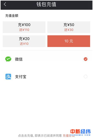 中新經(jīng)緯客戶端(微信公眾號:jwview)在摩拜APP充值頁面進(jìn)行親測,但并未找到無所謂的“1元起充”入口,頁面設(shè)置充值金額分別為10元、20元、50元和100元。
