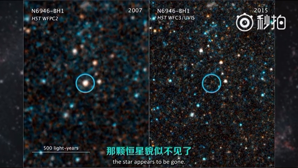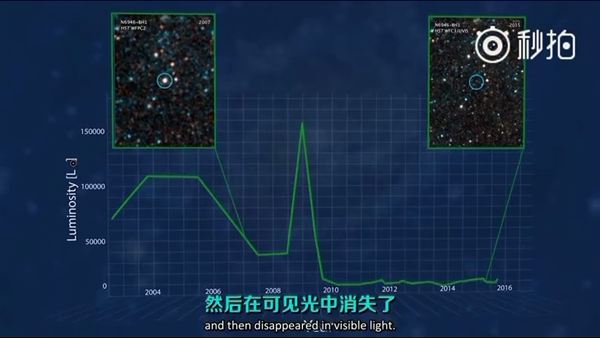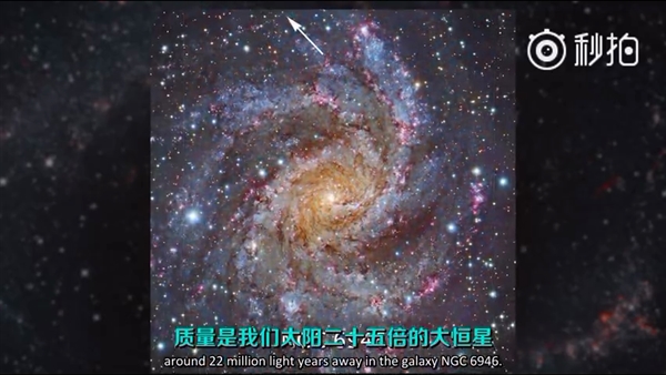 這顆恒星位于NGC 6946星系,距離地球約2200萬光年,質(zhì)量25倍于太陽,2007年觀察它的時候還只是一顆正常恒星,2015年再看過去它居然消失了。