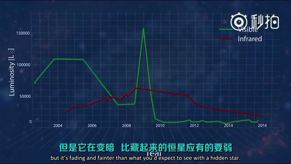 檢查歷史數(shù)據(jù)發(fā)現(xiàn),該恒星的亮度曾在2009年急劇增加,但遠未達到超新星爆發(fā)的級別,隨后就在可見光中不見了,紅外光中的亮度也很微弱,而且在不斷衰減。