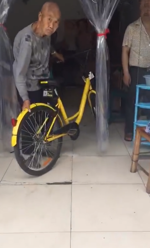 據(jù)半島都市報報道,近日,四川成都一女子解鎖了一輛共享單車,但是卻被一位老大爺搶走并拿回家里:“停我家門口就是我的。”
