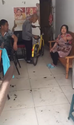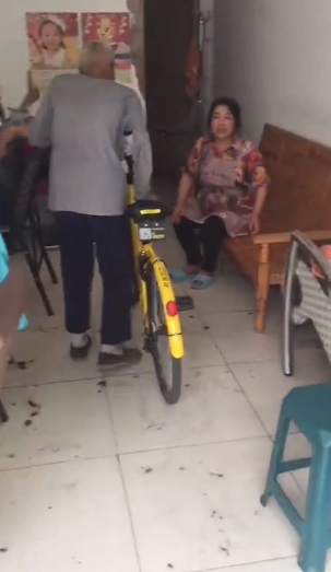 女子繼續(xù)勸阻:“這是我們掃的……”“這是共享的,這不是你的車…”然而車已經(jīng)被老人推到了屋子最里面。