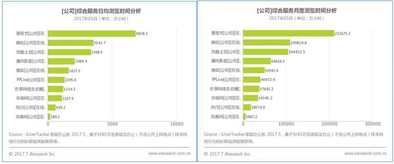 2017年5月PC視頻日觀看時(shí)長、月觀看時(shí)長排名