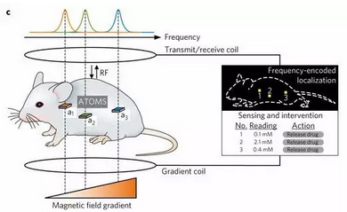 Shapiro 博士提到的 ATOMS 芯片正是他們開發(fā)出的“治療潛水艇”,它只有一枚硬幣的 250 分之一大。在一定的磁場梯度下,它們也能以不同的頻率共振,讓人分析出這些小芯片的位置。這打通了前往未來的道路。