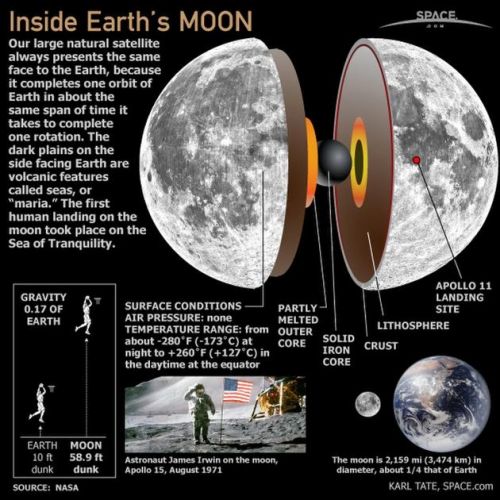 月球很可能擁有一個非常小的內(nèi)核,只占月球質(zhì)量的1-2%,直徑大約680公里,其主要成分可能是鐵,但也可能包含著大量硫和其它元素。