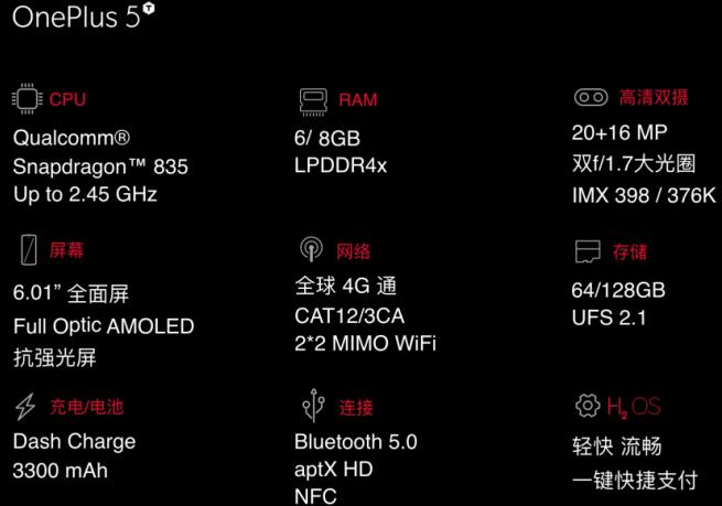 一加5T配置表