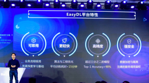 一個平臺即EasyDL。百度AI技術生態(tài)部技術經理謝永康介紹,EasyDL是一款定制模型訓練和服務平臺,具有可即用、更輕快、高精度、強安全四大特征。用戶根據文字提示進行簡單的頁面操作,只需四步,最快10分鐘即可訓練業(yè)務定制的深度學習模型。目前,EasyDL已經開放圖像分類、物體檢測定制訓練,未來還會陸續(xù)開放定制聲音識別等能力,以及多環(huán)境部署及數據服務。EsayDL“不可思議大賽”也將在5月1日正式開賽。