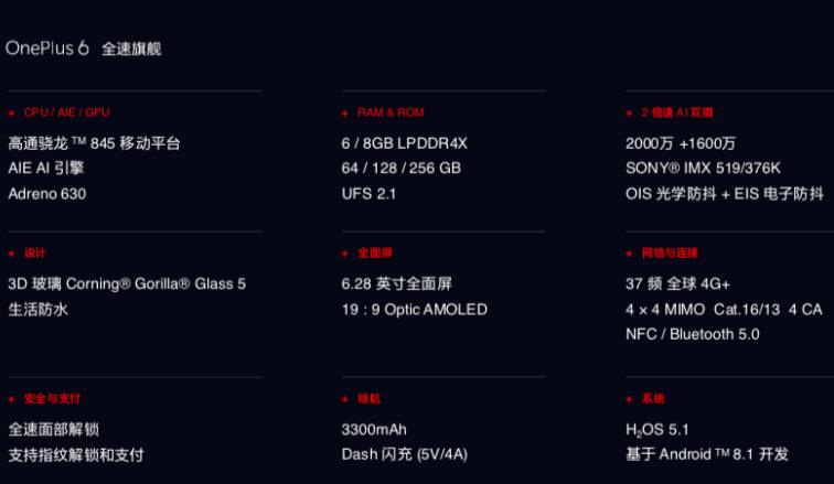 一加手機6配置表