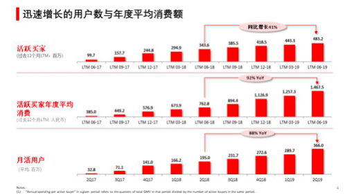 ▲拼多多2019年Q2財報顯示,平臺各項核心數(shù)據(jù)保持強勁增長。