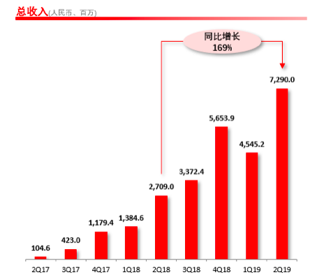 ▲二季度,拼多多實現(xiàn)營收72.90億元,同比增長169%,環(huán)比增長60%,高于市場61億元的普遍預(yù)期