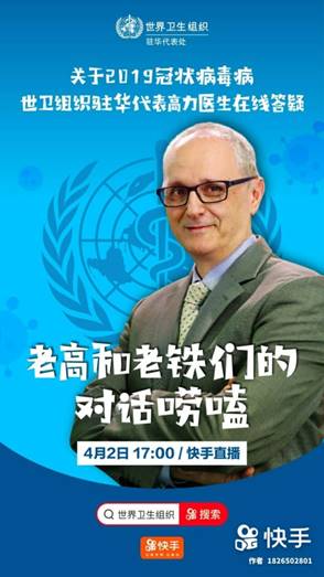 談及世界衛(wèi)生組織為何入駐快手并選擇快手進行此次直播合作,高力醫(yī)生表示,“很榮幸能與快手合作,向更廣泛的用戶傳達重要的健康信息!