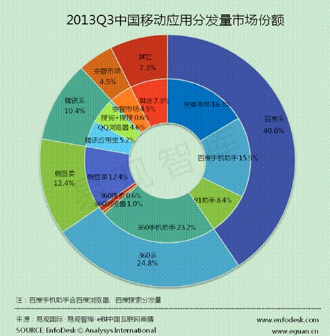 易觀:Q3應用分發(fā)百度系居首 市場份額40.6%