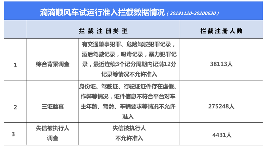 其次,為保證乘客乘車安全,滴滴順風(fēng)車進(jìn)一步提高準(zhǔn)入門檻。報(bào)告顯示,試運(yùn)行期間,滴滴順風(fēng)車駁回不符合新認(rèn)證要求(綜合背景審核、失信人篩查、三證驗(yàn)真)的車主317792人,對(duì)824名代刷臉及使用作弊工具的用戶永久暫停服務(wù)。