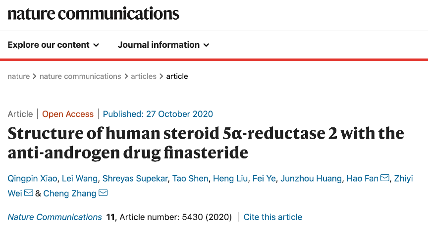 該項聯(lián)合研究成果于近日登上了國際頂級期刊Nature子刊《 Nature Communications》。論文題為《人體類固醇II型5a還原酶與抗雄激素藥物非那雄胺的結(jié)構(gòu)研究》,由南科大生物系魏志毅副教授課題組與匹茲堡大學張誠教授、新加坡A*STAR研究所范昊研究員、騰訊AI Lab黃俊洲博士帶領(lǐng)的研究小組合作完成。本次得到權(quán)威學術(shù)期刊發(fā)表及評審的高度評價,也驗證了該成果對藥物研發(fā)的創(chuàng)新價值。