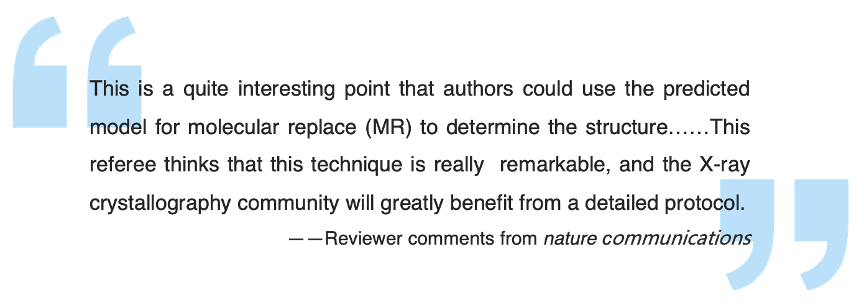 《Nature Communications》的一位評審對此創(chuàng)新方法給予了高度評價:“作者能用預測的分子置換(MR)模型來確定晶體結(jié)構(gòu),這一點非常有趣。本評審認為該技術(shù)確實非常出色,整個X射線晶體學界將從該方法中受益匪淺!