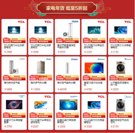 京東年貨節(jié)中的家電品類齊全,產(chǎn)品品質(zhì)更是讓人放心。如果是給父母選擇年貨產(chǎn)品,可以考慮智能電視、煙灶、熱水器、廚房電器、冰箱等等,這也是全國(guó)消費(fèi)者最喜歡消費(fèi)的家電產(chǎn)品。智能家電產(chǎn)品不僅幫助父母減少勞動(dòng),還可以增加家庭歡愉氛圍,肯定能討父母的歡心。