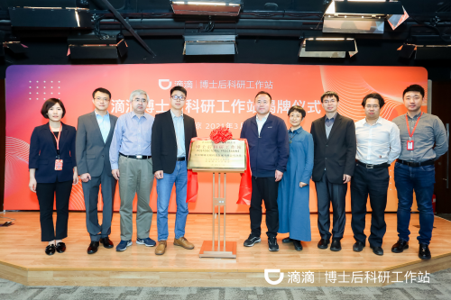 滴滴技術(shù)管理者及高校代表共同為“滴滴博士后科研工作站”揭牌