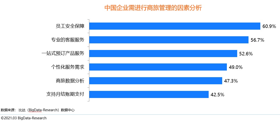 差旅費用已經(jīng)是企業(yè)第二大可控成本。2021年,中國企業(yè)商旅需求將會有較快速的恢復(fù),調(diào)查結(jié)果顯示,有60.6%企業(yè)認(rèn)為差旅費預(yù)算2021年比2020年增長20%以上。差旅費用數(shù)字化轉(zhuǎn)型已成企業(yè)剛需,同時也是企業(yè)成本可控、合規(guī)管理、差旅決策和員工體驗需求平衡的需要。差旅為企業(yè)剛需是企業(yè)進(jìn)行商旅管理的內(nèi)在因素。