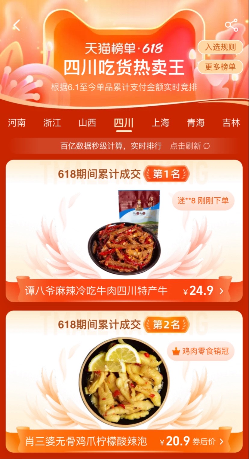 圖:四川吃貨熱賣榜 前三名里兩個(gè)辣的
