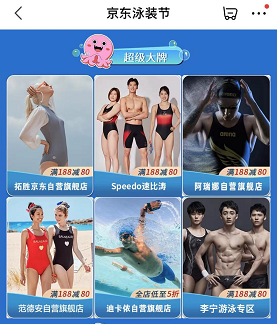 除了線下豐富多樣的活動(dòng)外,京東運(yùn)動(dòng)在線上也同步帶來了海量爆款和專屬福利。7月21日,京東運(yùn)動(dòng)將繼續(xù)加碼泳裝品類福利,開啟線上大促活動(dòng),消費(fèi)者在當(dāng)天將可享受滿188減80的誘人福利,迪卡儂等品牌更是低至5折,專業(yè)運(yùn)動(dòng)裝備、休閑玩趣用品應(yīng)有盡有。作為本次京東泳裝節(jié)的合作品牌,李寧將帶來男士游泳包豪華套組,泳褲、泳鏡、泳帽配齊僅需139元,一包在手下水無憂;速比濤也推出日本原裝進(jìn)口爆款泳鏡,具備高清防霧防水防紫外線大視野優(yōu)勢(shì),任何水上運(yùn)動(dòng)都能滿足,136元即可秒殺;此外,范德安推出的連體女士泳衣也登上爆款榜單,作為眾多明星青睞的高端女士泳衣品牌,遮肚、顯瘦、聚攏、防曬設(shè)計(jì)與輕薄面料質(zhì)感完美結(jié)合,成為女性消費(fèi)者的熱門選擇。