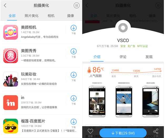 小編在此就要祭出神器百度手機(jī)助手拯救大家的朋友圈!百度手機(jī)助手中囊括了百余款攝影及后期處理app,只需要打開分類中的“拍攝美化”每個(gè)人都能秒變攝影大師。除了女生們都相當(dāng)熟悉的必備app美圖秀秀及美顏相機(jī),百度手機(jī)助手中還有很多大家并不那么熟悉,但也絕對(duì)是神器級(jí)別的app,小編在此就為大家揭秘!