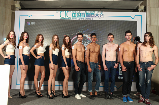 網(wǎng)秦“黃金秀場”展區(qū)“標(biāo)配”洋模站臺(tái),活生生的“人體廣告”。
