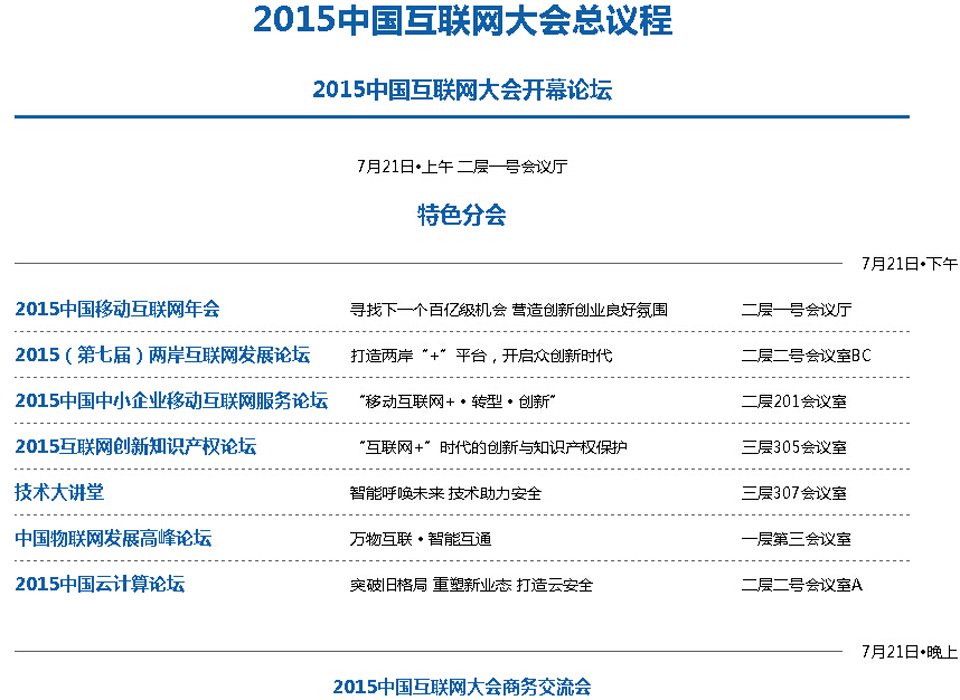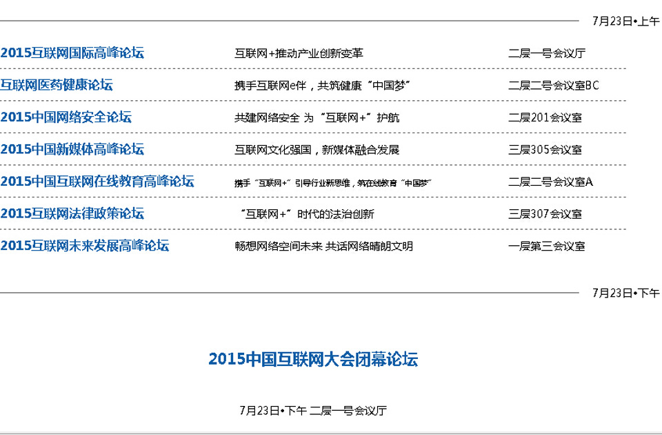 - 互聯(lián)網(wǎng)大會(huì)今日落幕 互聯(lián)網(wǎng)+、020縱貫全場(chǎng)[2015-07-23 11:38]