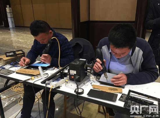 當(dāng)天晚上5時許,在論壇主會場大廳,幾位設(shè)備維護(hù)人員依然在忙碌地檢修著大廳頂棚上嵌扣的LED電子屏,絲毫沒有注意到室外天色已暗。在一張臨時擺放的桌子前,維修人員陳剛和同事面前各擺著一塊20厘米乘以20厘米的LED顯示屏,上面密布著4000個毫米級的LED光源體,他們目不轉(zhuǎn)睛地查驗并更換壞掉的LED光源體。陳剛說,因為老鼠破壞,導(dǎo)致場館頂棚上的電子大屏電路板出現(xiàn)問題,兩天前,他和同事5個人入館維修,已經(jīng)完成大部分工作,“現(xiàn)在只剩下100多塊需要檢修的,今天必須修完!