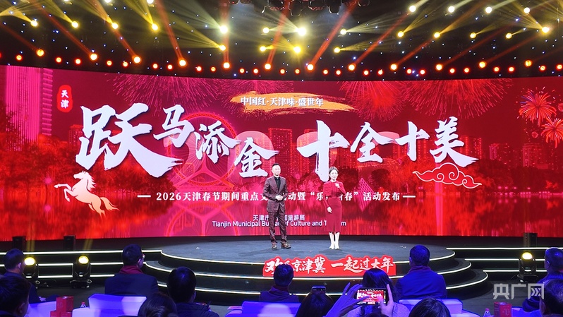 央廣網(wǎng)天津2月11日消息(記者褚夫晴 實習(xí)記者馬熙然)2月9日,“歡樂京津冀一起過大年”2026京津冀新春文旅活動暨“樂購新春”天津活動發(fā)布儀式成功舉辦。本次活動由北京市文化和旅游局、天津市文化和旅游局、河北省文化和旅游廳、天津市商務(wù)局等聯(lián)合主辦,通過春節(jié)系列活動發(fā)布、主題推介、特色演出等環(huán)節(jié),全方位展現(xiàn)京津冀新春文旅魅力與消費活力。