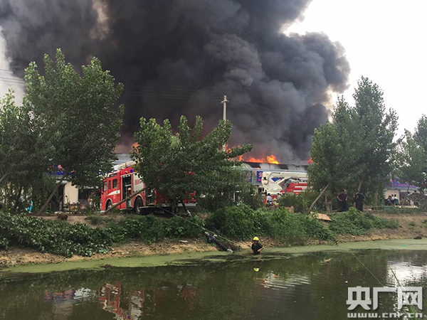 央廣網(wǎng)天津6月19日消息(記者 蘇平 劉陽(yáng))6月19日上午,天津小南河附近廠房突發(fā)火情。記者10點(diǎn)半趕到現(xiàn)場(chǎng)后發(fā)現(xiàn),著火現(xiàn)場(chǎng)黑煙彌漫。據(jù)目擊者介紹,火災(zāi)大約于9點(diǎn)半發(fā)生,可能是輪胎起火引發(fā)。目前消防部門(mén)已調(diào)集10余輛消防車進(jìn)入現(xiàn)場(chǎng)滅火,為避免火情擴(kuò)散,工廠附近已戒嚴(yán)。目前傷亡情況不明。消防部門(mén)仍在緊急撲救中。
