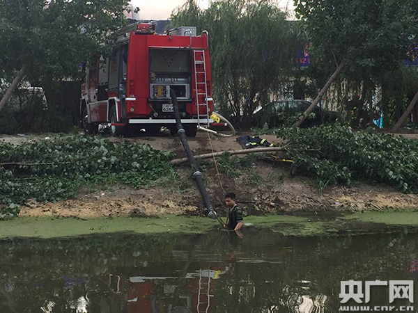 消防人員正在從河中取水用于滅火。