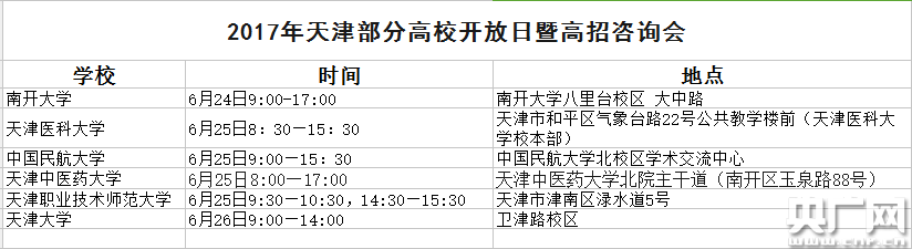 三、電臺(tái)訪談:天津人民廣播電臺(tái)將邀請市教育招生考試院、警備區(qū)招生辦、高校招生辦負(fù)責(zé)同志介紹高校招生情況,解答考生填報(bào)志愿的相關(guān)問題。具體播出時(shí)間:6月24日至26日,天津人民廣播電臺(tái)新聞廣播(每晚19:00—20:00);6月22日至27日,天津人民廣播電臺(tái)經(jīng)濟(jì)廣播(每天早晨7:30— 8:30);6月21日至23日、27日,天津市廣播電視臺(tái)濱海廣播《都市零距離》(每天下午16:00—17:00)。